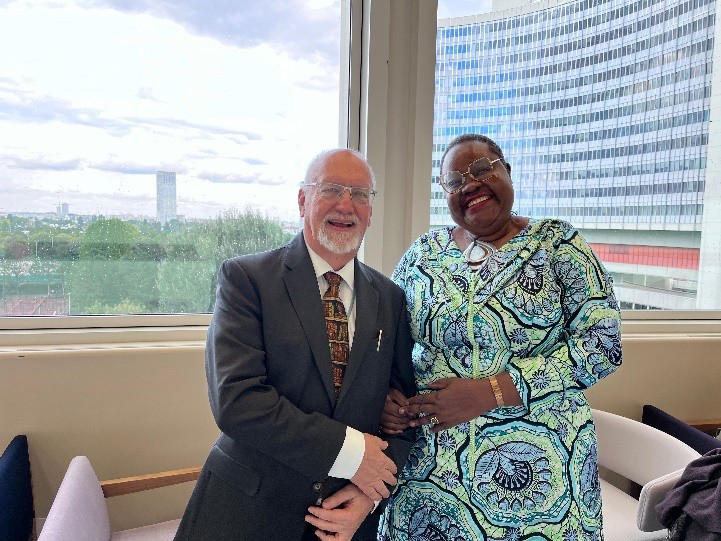 At a recent meeting in Vienna, FAFICS President Jerry Barton and FICSA President Wadzanai Garwe talked about the upcoming HLCM, including the importance of retiree representation on health insurance committees; and to further plan the joint FICSA/FAFICS virtual pre-retirement seminar later in October.